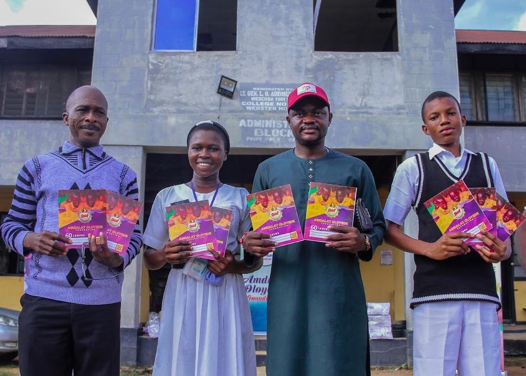 The Amdalat Oloyede Foundation has demonstrated its unwavering commitment to educational empowerment by donating over 6,000 exercise books and other essential writing materials to two secondary schools in Ibadan, Oyo State. The schools which benefited from this educational empowerment are, Wesley College of Science, Elekuro and CAC Primary School 1-3 Eleta, Ibadan, these stated schools received the items in a gesture aimed at supporting students’ academic development.
