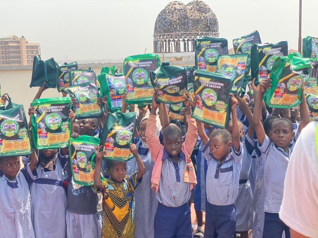 An Ibadan-based sociocultural group, Egbe Borokini, has distributed school bags and exercise books to 150 students across three schools in 11 local government areas in Ibadan.