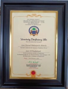 De-Damak, as the business tycoon is popularly called, will be installed alongside his wife, Alhaja Mariam Olubukola Akinola as Aare and Yeye Aare of Ibadanland respectively at a date to be agreed on by the stakeholders.