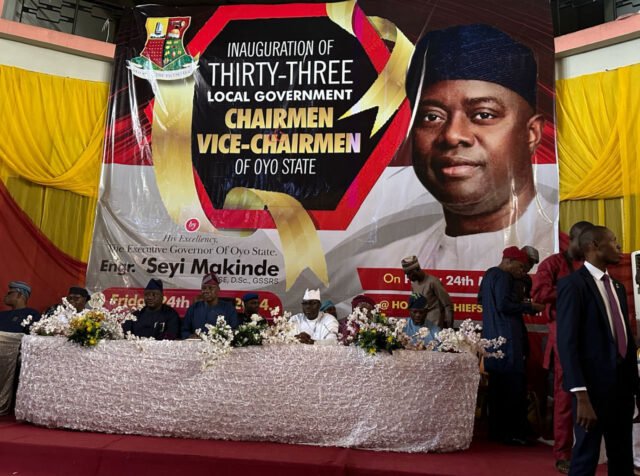 ‘Seyi Makinde, governor of Oyo State, was absent as newly elected council chairmen were inaugurated Friday morning.