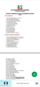 The Oyo State chapter of the All Progressives Congress, APC, is not taking the forthcoming local government election with levity as OYOINSIGHT.COM has exclusively obtained list of its technical committee for the exercise.