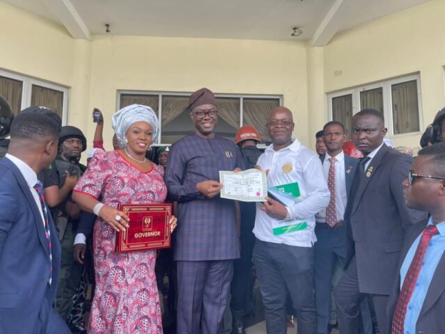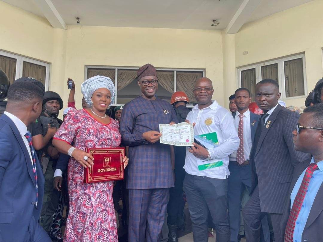 With traditional rulers, market men and women, associations and other stakeholders in attendance, Makinde, his deputy and 32 members of the state house of assembly got their certificates of return at an event put together by the Independent National Electoral Commission, INEC, which took place at the International Conference Centre of the University of Ibadan.