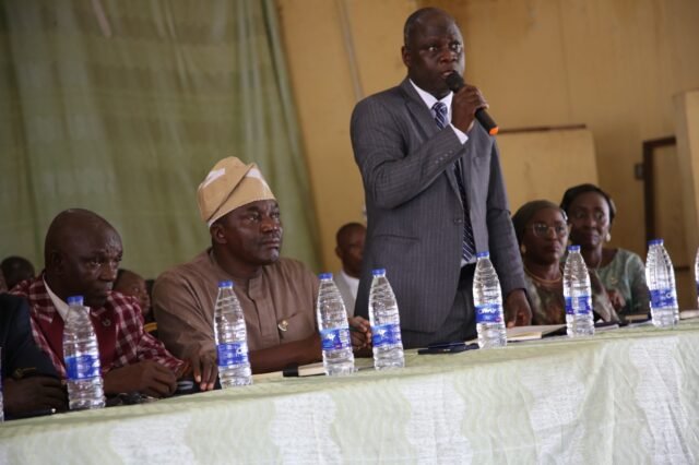 Commissioner for Education, Science and Technology, Prof. Salihu Adelabu, while meeting with Principals of Public Secondary Schools in Zone one, two and three at Lagelu Grammar School, Agugu, Ibadan, directed schools to collect their BECE and screening /placement results at the Local Inspector of Education (LIE) offices across the state.