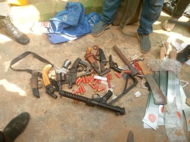 Exhibits recovered from the suspects are one AK-47 Riffle, four (4) AK-47 magazines, Eighty four (84) live AK-47 Ammunitions, Nineteen (19) pump action riffles, one Barreta Pistol, Seven Cut-to-size Gun, one English made Barrel Gun, Seven Hundred and twenty four (724) live cartridges, 25 cutlasses, Seven Jack knives, thirty three(33) mobile phones, one Samsung Laptop, Charms, One Mazda Bus, One Toyota Sienna, Cash sum of Three Million, Four Hundred and fifty thousand naira, (N3,450,000.00).
