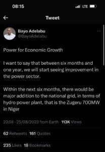 Power minister, Adebayo Adelabu, is trending, but for the wrong reason, on twitter over what tweeps described as his search for political powers ahead of the 2027 election.