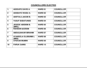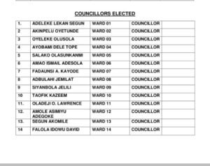 The Oyo State chapter of the All Progressives Congress, APC, has released the names of its successful councillorship candidates for the April 2024 local government election.